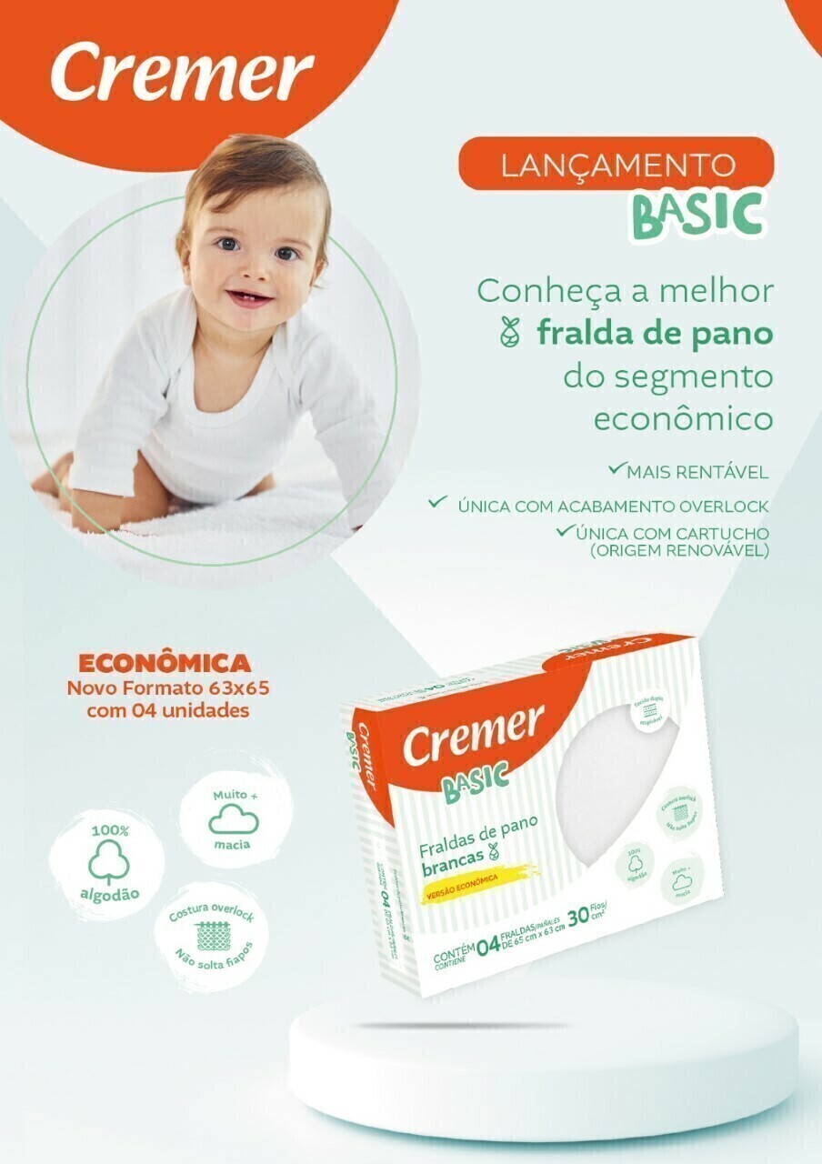Apresentamos a nova linha de fraldas econômica Basic Cremer, com destaque para a Fralda de Pano Branca Cremer Basic. Essas fraldas são versáteis e oferecem uma série de benefícios para o cuidado do seu bebê.
