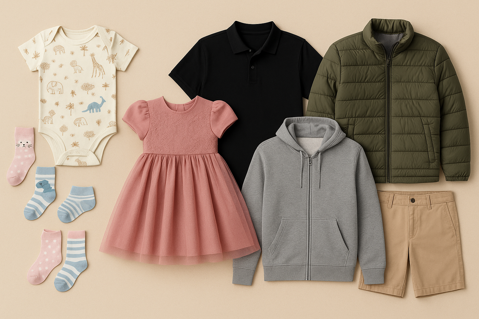 ✅ Moda Infantil – bodies, conjuntos, vestidos, meias, enxoval e peças confortáveis para o dia a dia.